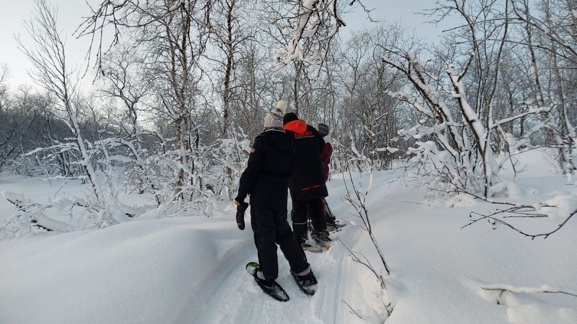 Petra nemcsak a hótalpat és a síbotokat hozta el. Olyan meleg kesztyűt, sálat és sapkát adott, amelyek a mínusz 50 fokos viszonyok között is megvédtek minket. Bár az öltözködés nem volt egyszerű, az idő sürgetett minket, hiszen déltájban hamarosan sötétedni kezdett. A hótalpak felcsatolása után a csapat négy tagja – mindannyian izgatottan néztünk egymásra, készen a felfedezésre.